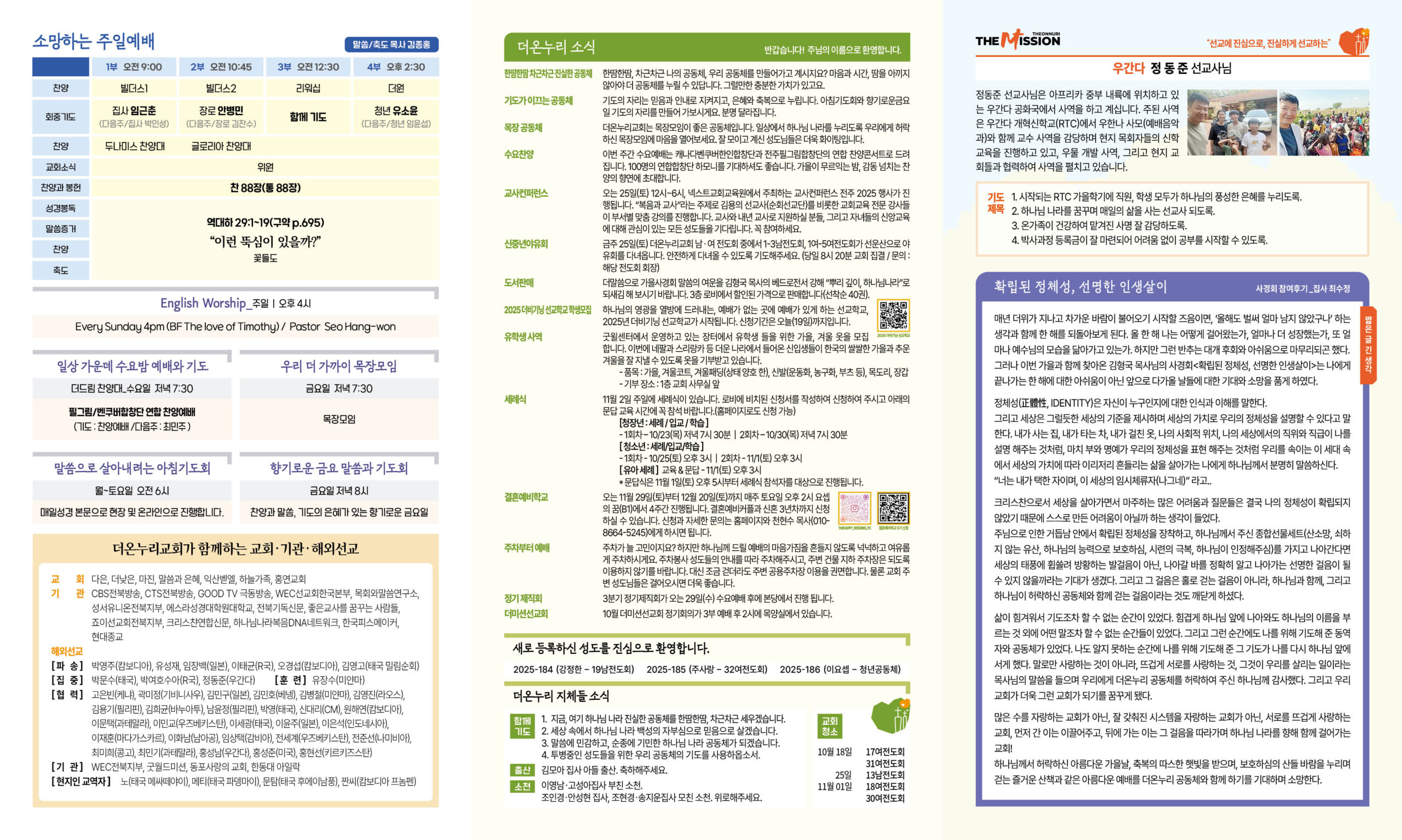 금주 25일(토) 더온누리교회 남.녀 전도회 중에서 1-3남전도회, 1여-5여전도회가 선운산으로 야유회를 다녀옵니다. 안전하게 다녀올 수 있도록 기도해주세요. (당일 8시 20분 교회 집결 / 문의 : 해당 전도회 회장)